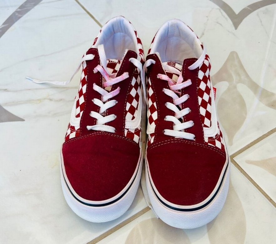 Bordo Renk Ekose Desenli Vans