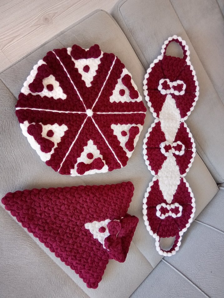 Renkli bordo ve beyaz tasarıma sahip, yumuşak dokulu banyo süngeri seti. Yuvarlak ve uzun şekillerle farklı kullanımlar için uygun.