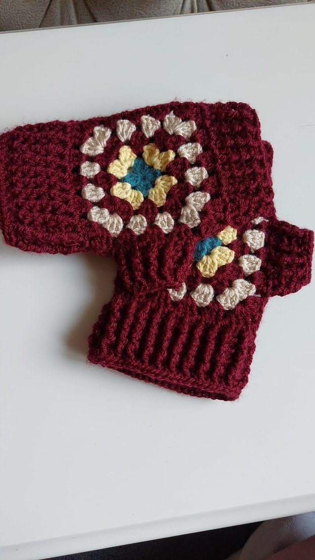Bordo renkli, renkli bohem desenli örgü kadın eldiveni. Yumuşak ve rahat dokusu ile retro ve hippie tarzına uygun.