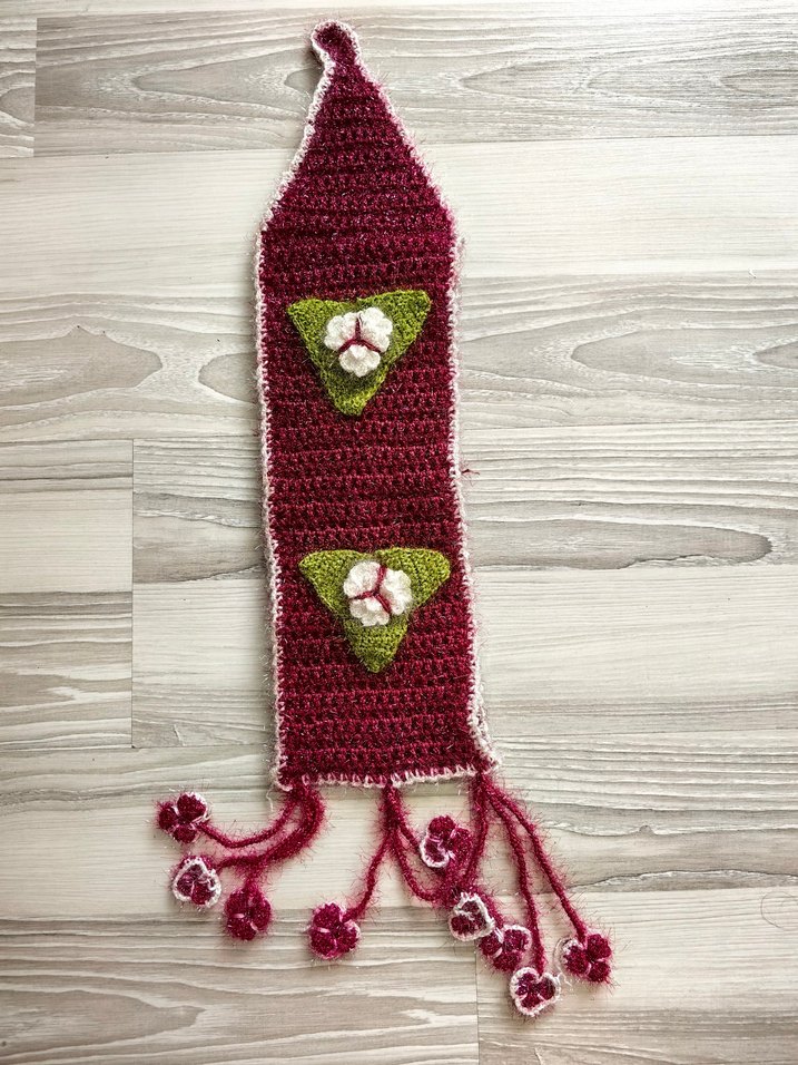 Bordo renkli el Örgüsü. renkli çiçek süslemeleri ve püsküllerle dikkat çekiyor. 2 tane tuvalet kağıdı geçiriliyor. Yeni.