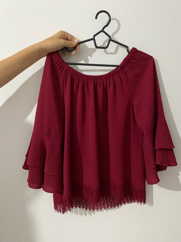 Bordo Renkli Fırfırlı Kadın Bluz Strablez
