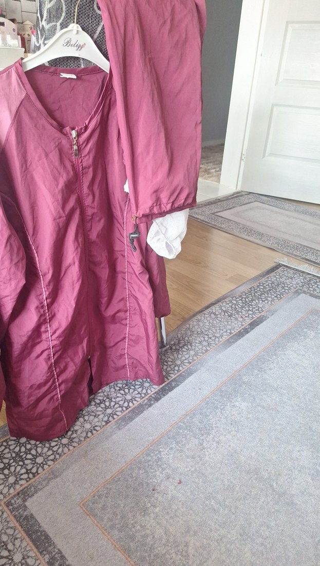 Bordo renkli, sade desensiz, fermuarlı ve uzun kollu, yumuşak ve rahat kumaştan haşema