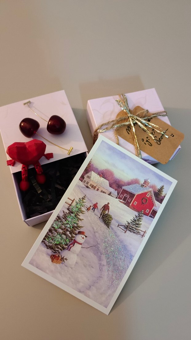 Kiraz küpe Kalp obje ve nostaljik kartpostal hediyesi ile birlikteee ve tabiki şık paketli kutusu ile... Yeni yıl hediyesi, doğum günü hediyesi veya içimden geldi hediyesi... Ya daa kendinize bir hediye