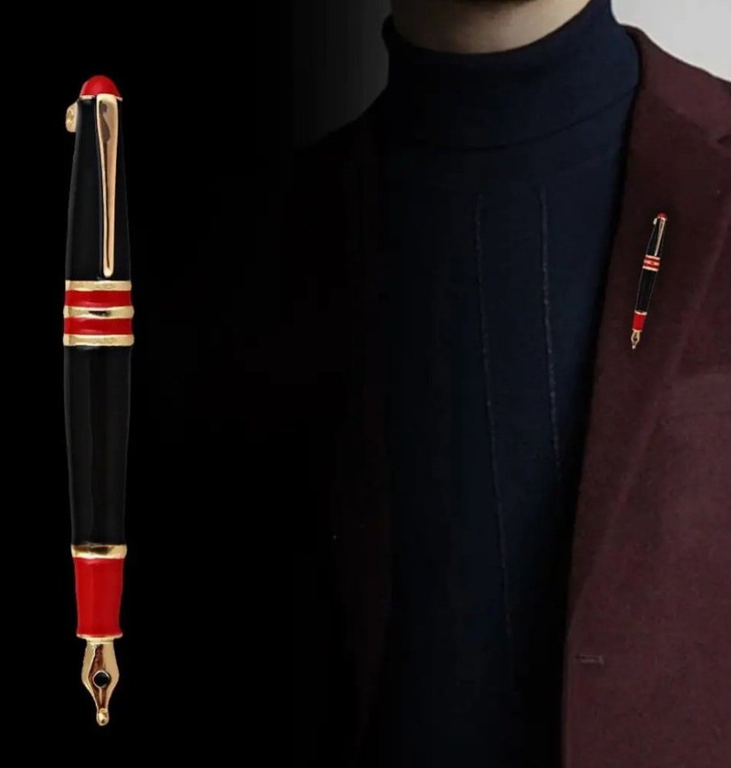 Bordo Renkli Klasik Dolma Kalem Broş