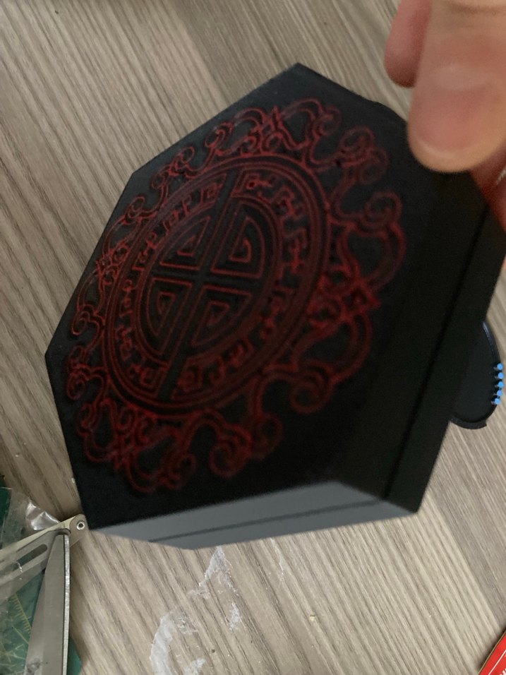 Bordo renkli oyun faresi, yüzeyinde koyu ve detaylı desen bulunur, hassas kontrol ve konfor sağlar.