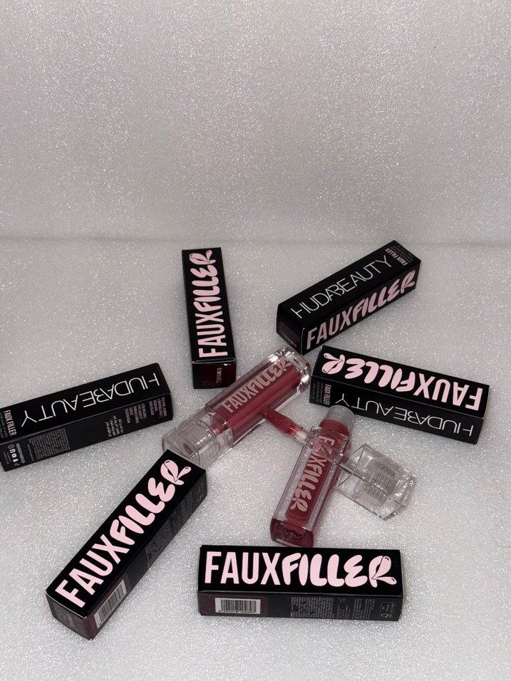 Bordo renkli, mat bitişli likit ruj. Huda Beauty'nin FAUXFILLER serisine ait.