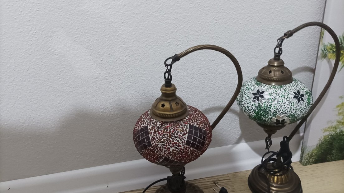 Bordo Renkli Mozaik Masa Lambası bordo kırıklık var resimde
