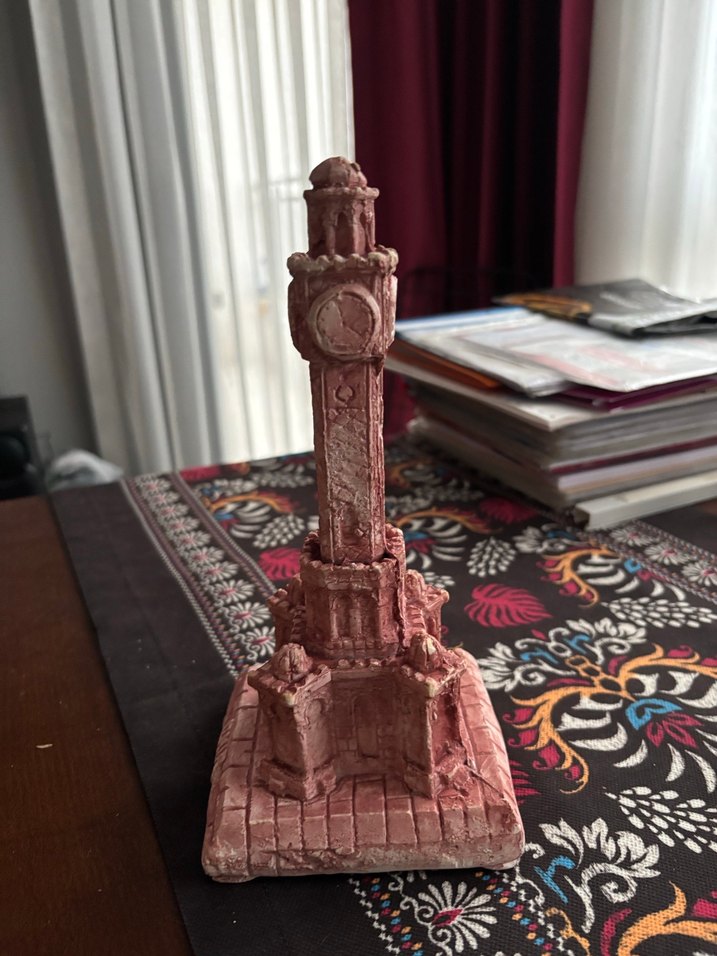 Bordo Renkli İzmir Saat Kulesi Figürü