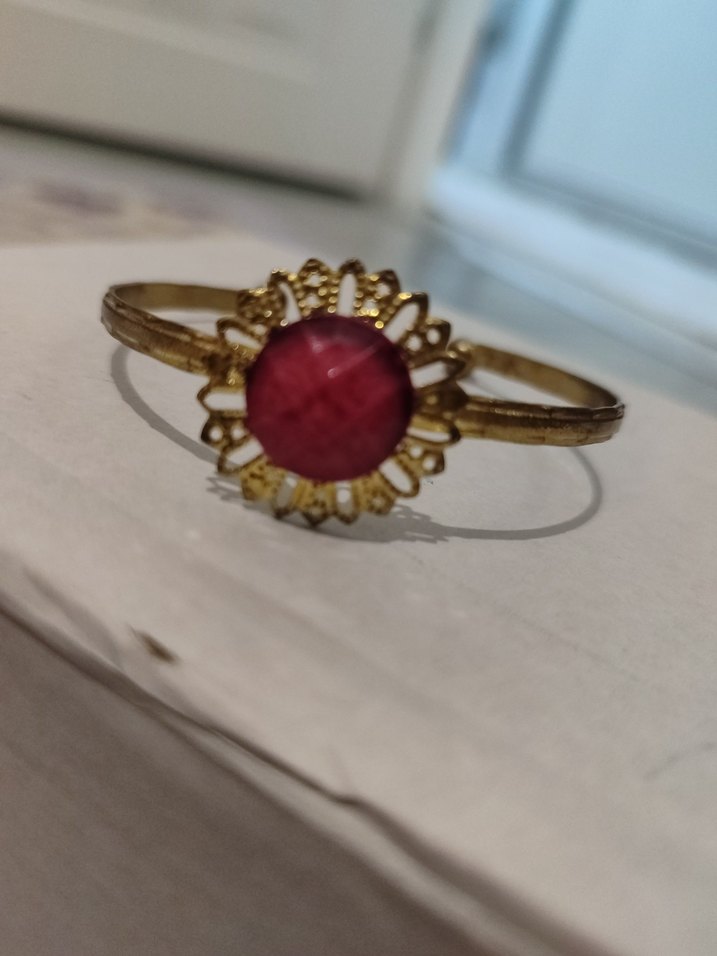 Bordo renkli boncuklu ve çiçek desenli vintage tarzı bilezik, bohem düğün kombinlerine uygun.