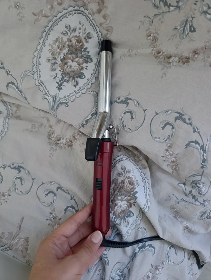 Bordo renkli saç maşasının kıvırma ucu gri ve kelepçesi siyahtır. Saç şekillendirmek için kullanışlıdır.