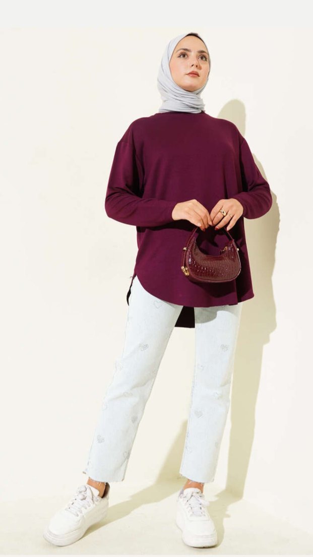 Salaş kesim, uzun kollu, bisiklet yaka bordo tunik. Süet dokulu, günlük kullanıma uygun, rahat ve şık bir tasarım. 36 42 beden aralığında tüm bedenleri mevcuttur