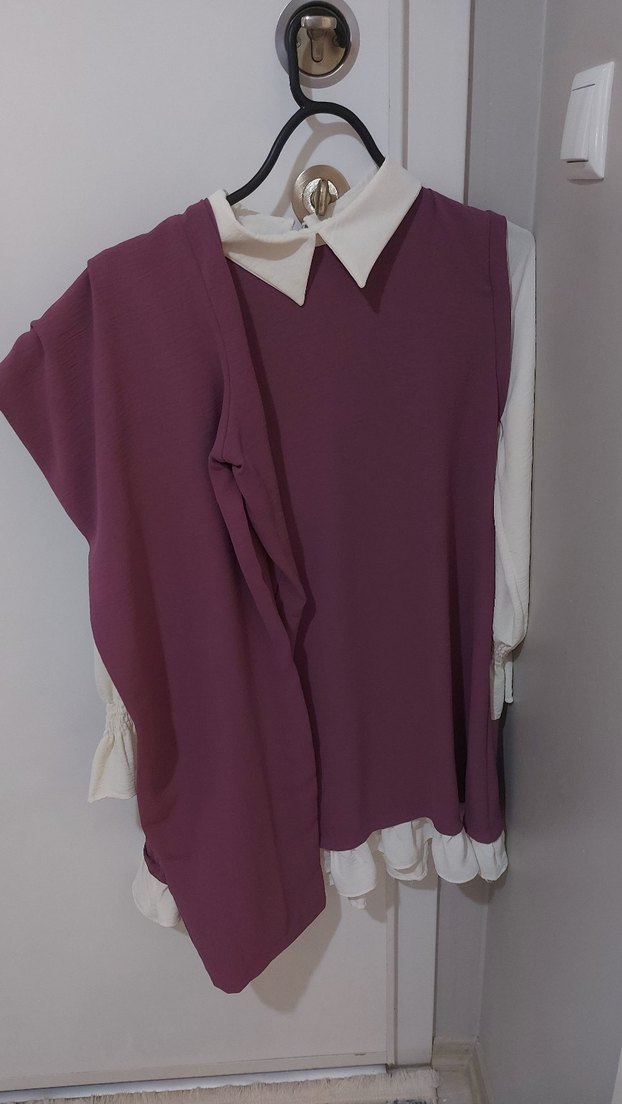 Bordo renk, salaş kesim, drapeli midi tunik. Yakalı ve uzun kollu, yumuşak sentetik kumaştan üretilmiş, rahat ve şık bir görünüm sunar.