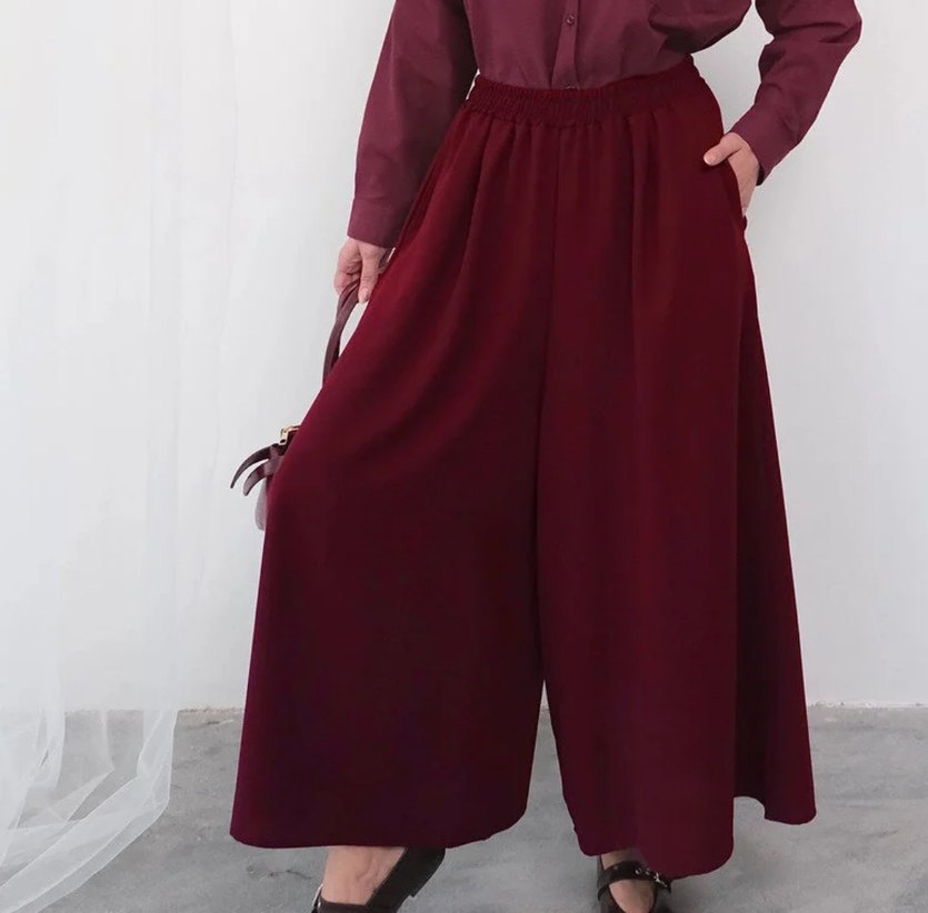Bordo renk, salaş kesim ve dökümlü tasarıma sahip uzun kadın kumaş pantolon. İpek gibi dokusu ve minimalist normcore tarzıyla günlük kullanıma uygundur.