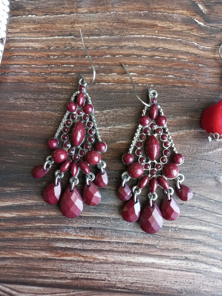 Bordo sallatılı bohem küpe,gayet iyi durumdadır çok keyifli bir model.