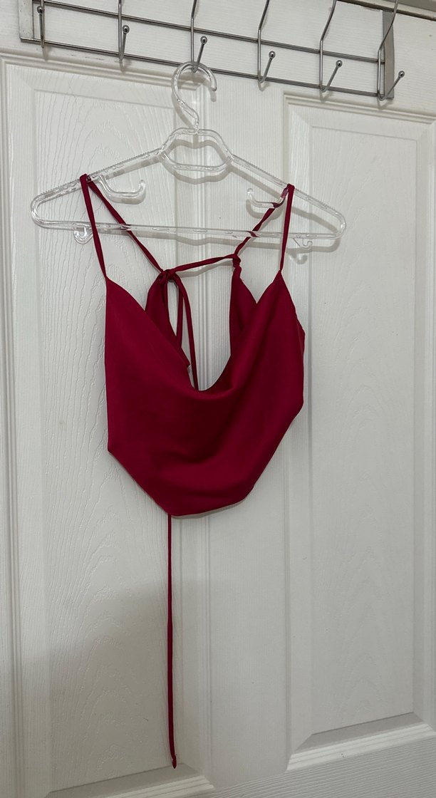 Bordo saten Bralet sırtı bağlamalı degaje yaka koton