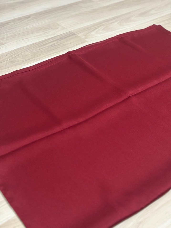 Bordo renkte, parlak ve saten dokulu kadın şal, hafifçe drapelenmiş tasarımıyla sade ve klasik tarzlara uygundur.