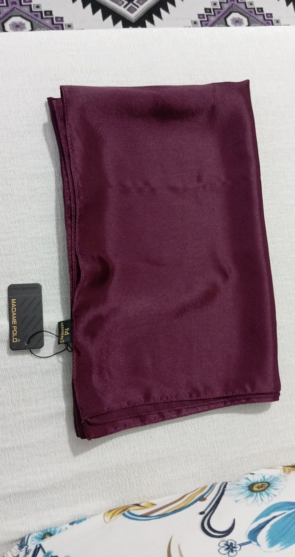 Kadınlar için saten kumaştan, koyu bordo renkte, drapeli şal.