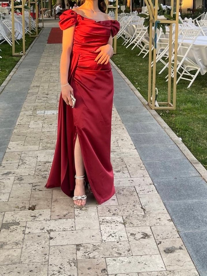 Bordo Saten Uzun Abiye bi sefer giyildi