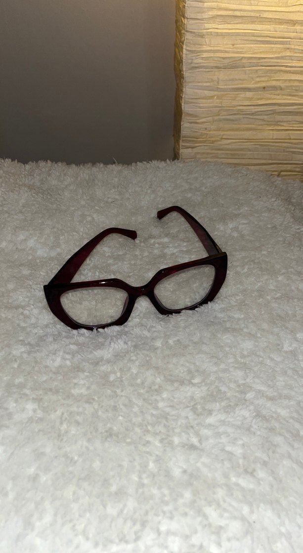 Bordo şeffaf camlı kadın gözlüğü, minimalist ve koyu gotik tarzda, eski moda bir görünüm sunar.