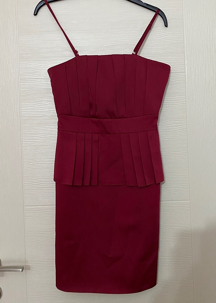 Bordo şık gece elbisesi