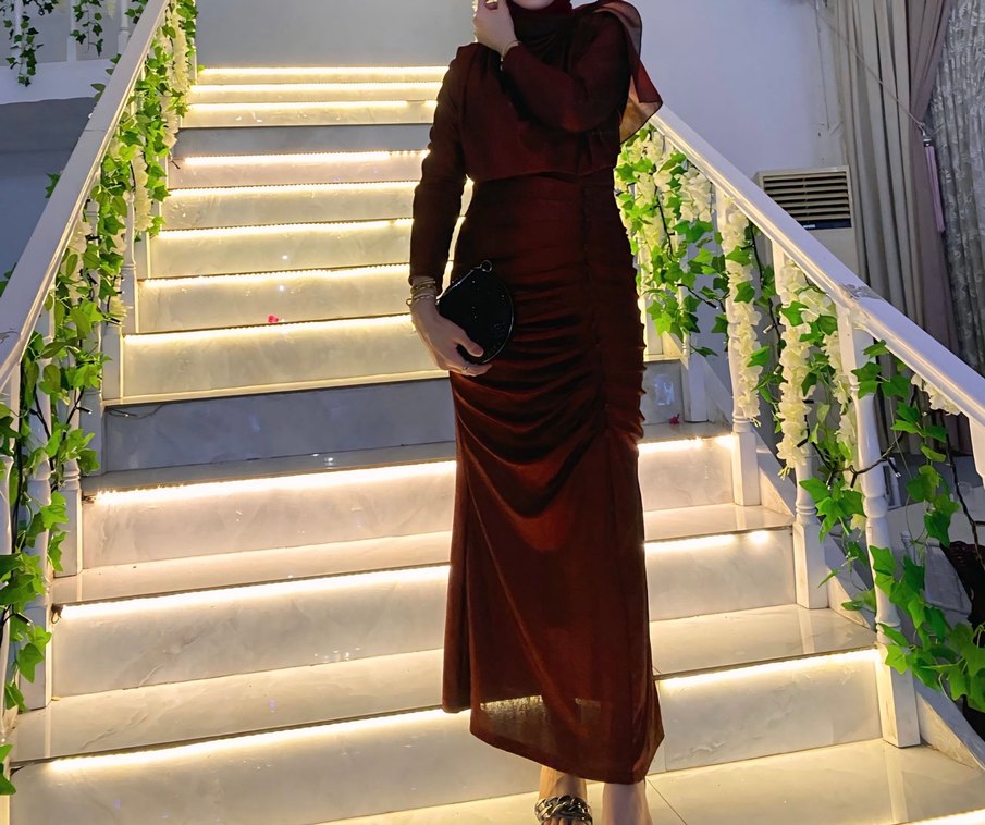 Bordo, drapeli ve uzun kesim abiye elbise, straplez yakası ve dar kesimiyle şık ve çağdaş bir görünüm sunar. ✨