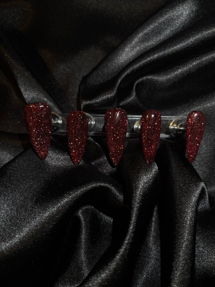 Parlak simli bitişe sahip koyu bordo tırnak süslemeleri, şık bir görünüm sağlar. ✨ Yeni nesil tips üzerine jel uygulanarak kalıcı oje ile renklendirilmiştir. Ölçülerinize özel olarak hazırlanacaktır. Paket içerisinde portakal çubuğu ve mini törpü mevcuttur. Yeni ilan açtırınız