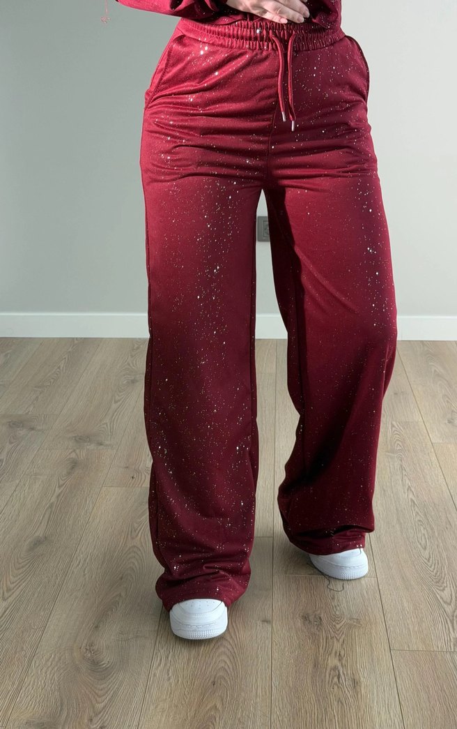 Bordo renk, simli ve yumuşak dokulu, rahat kesim kadın eşofman altı. Şık ve rahat kombinler için uygundur. ✨