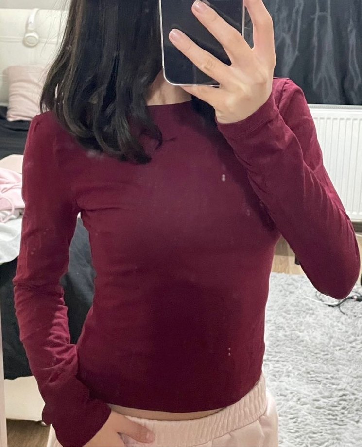 Bordo renkli süet kumaştan yapılmış, uzun kollu ve dar kesim bir kazak. Normal boyu ve yuvarlak yakasıyla günlük ve romantik akşamlar için uygun, şık ve sade tasarım.