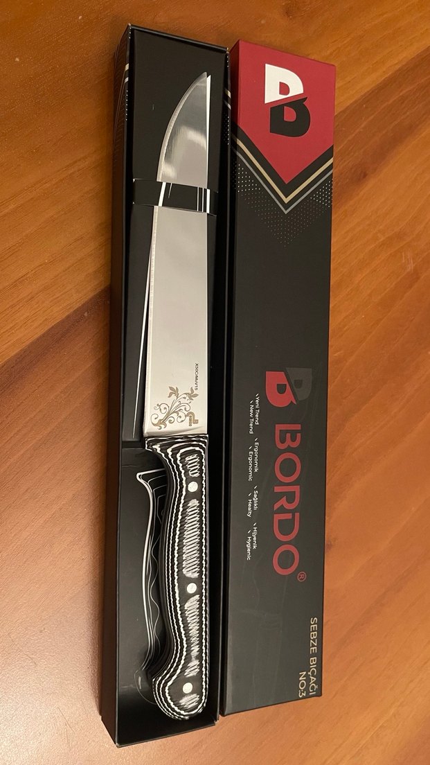 BORDO siyah bıçak, keskin ve parlak bir bıçağa, ergonomik tutacağa sahiptir. Kesim için uygundur.