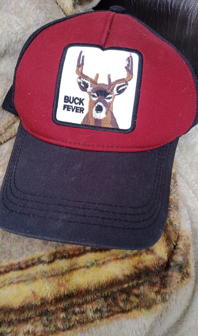Bordo ön ve siyah siperlikli, 'Buck Fever' yazılı geyik desenli erkek biker şapka. Koyu renk tonları ve rahat tarzıyla rock punk havası verir.