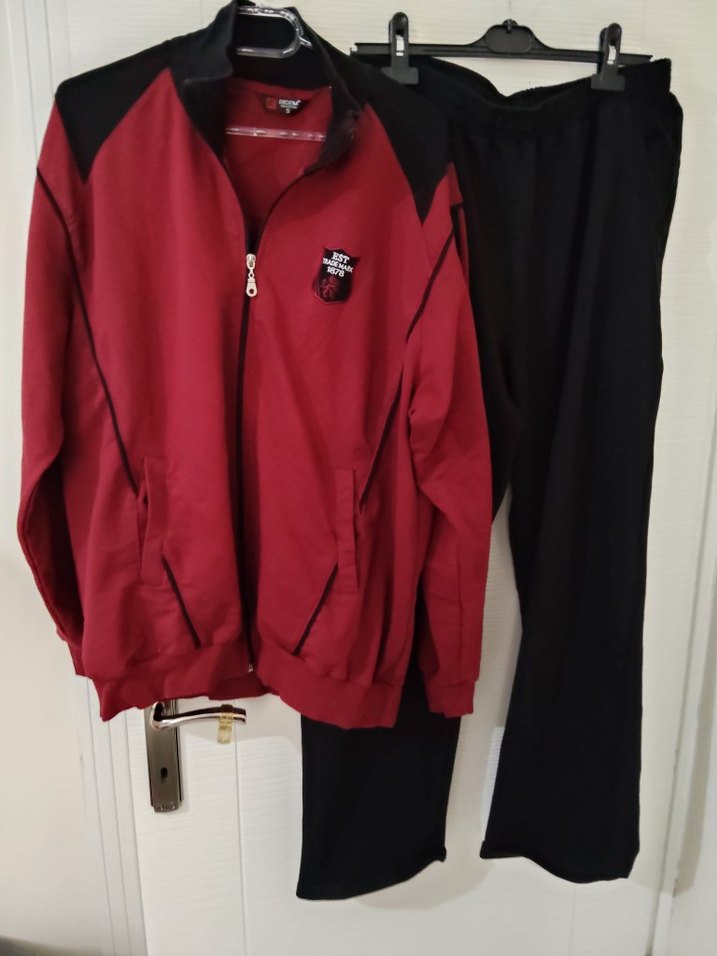 Bordo renkli fermuarlı ceket ve siyah pantolondan oluşan, yumuşak ve sıcak kumaşlı, rahat kesim kadın eşofman takımı. Notlu yaka ve uzun kolludur.