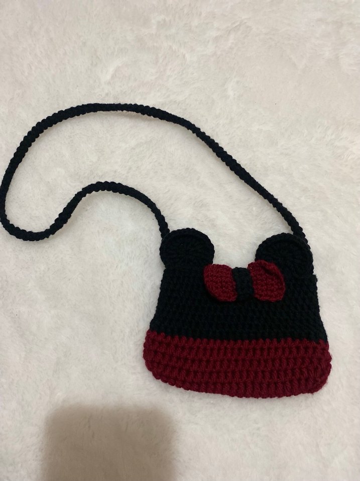 Bordo Siyah mili mause figürlü bebek çantası