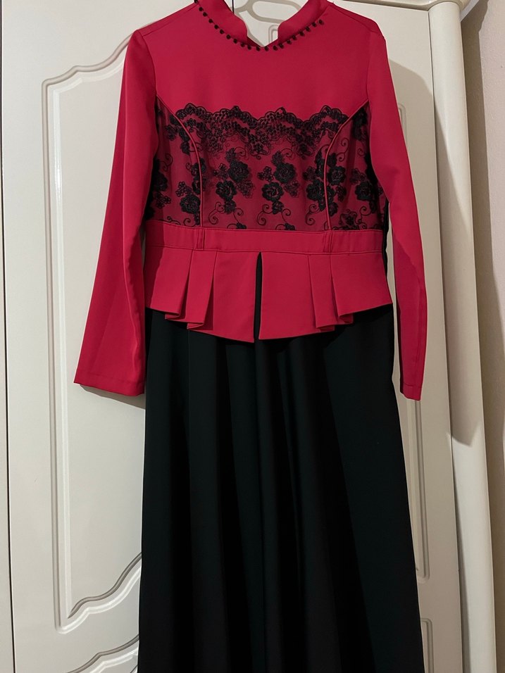 Bordo Siyah Uzun Kollu Kadın abiye