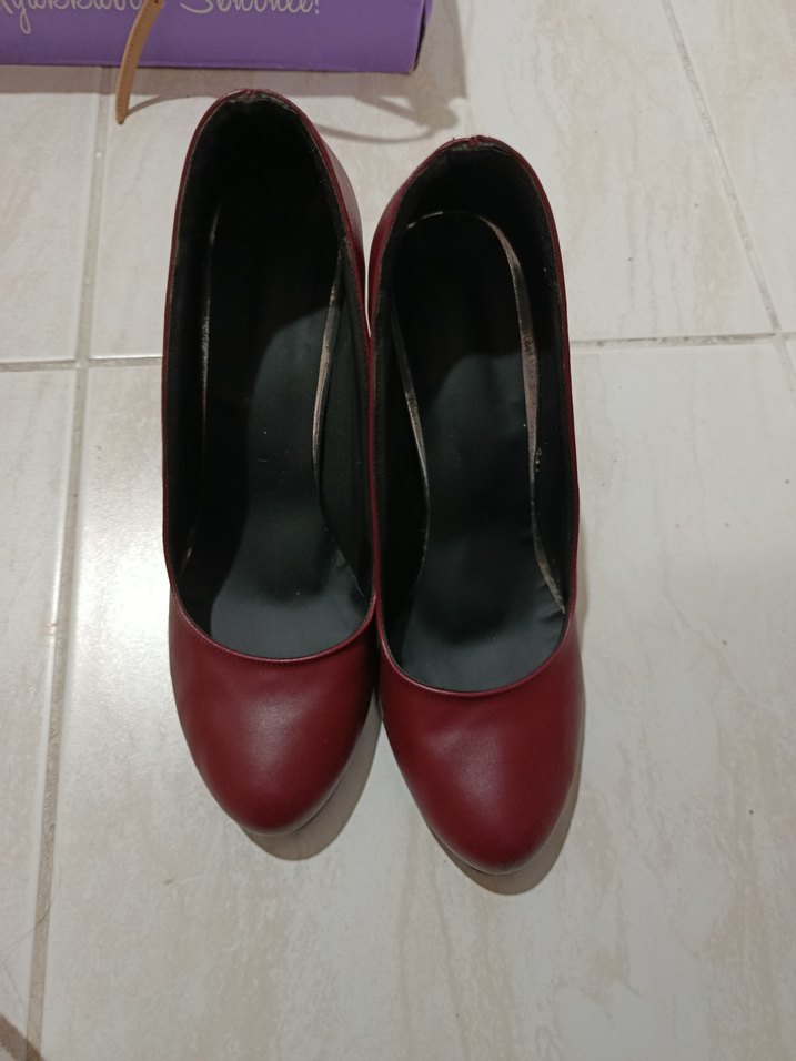 Bordo renkli, minimal tasarımlı, kauçuk malzemeden yapılmış stiletto topuklu kadın ayakkabı. Günlük kullanıma uygun, cesur ve çağdaş tarz.