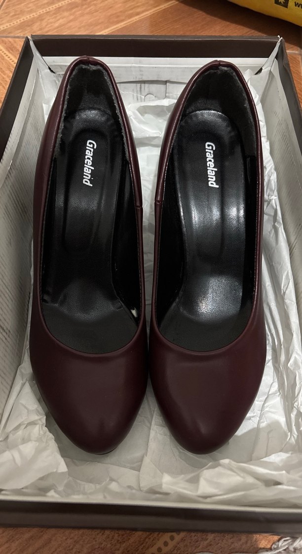 Graceland markalı bordo renk stiletto topuklu, klasik ve desen içermeyen kauçuk malzemeden, ofis için şık ve iddialı bir model.hotiç markası değildir