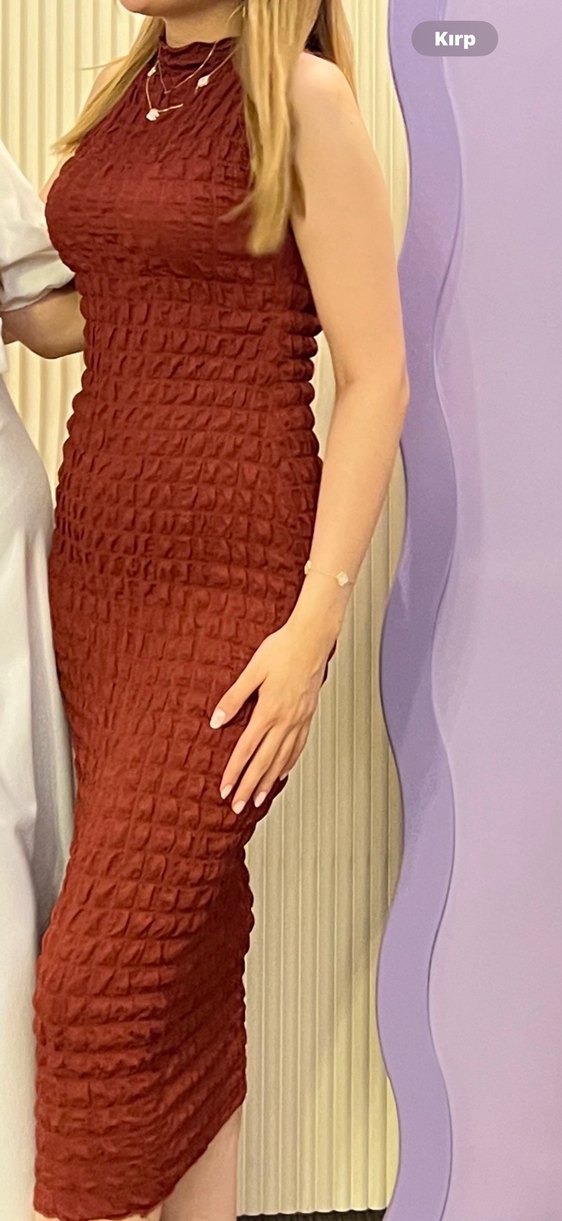 Pull and bear tarçın rengi elbise m beden esnek kalıp 1 kere giyildi