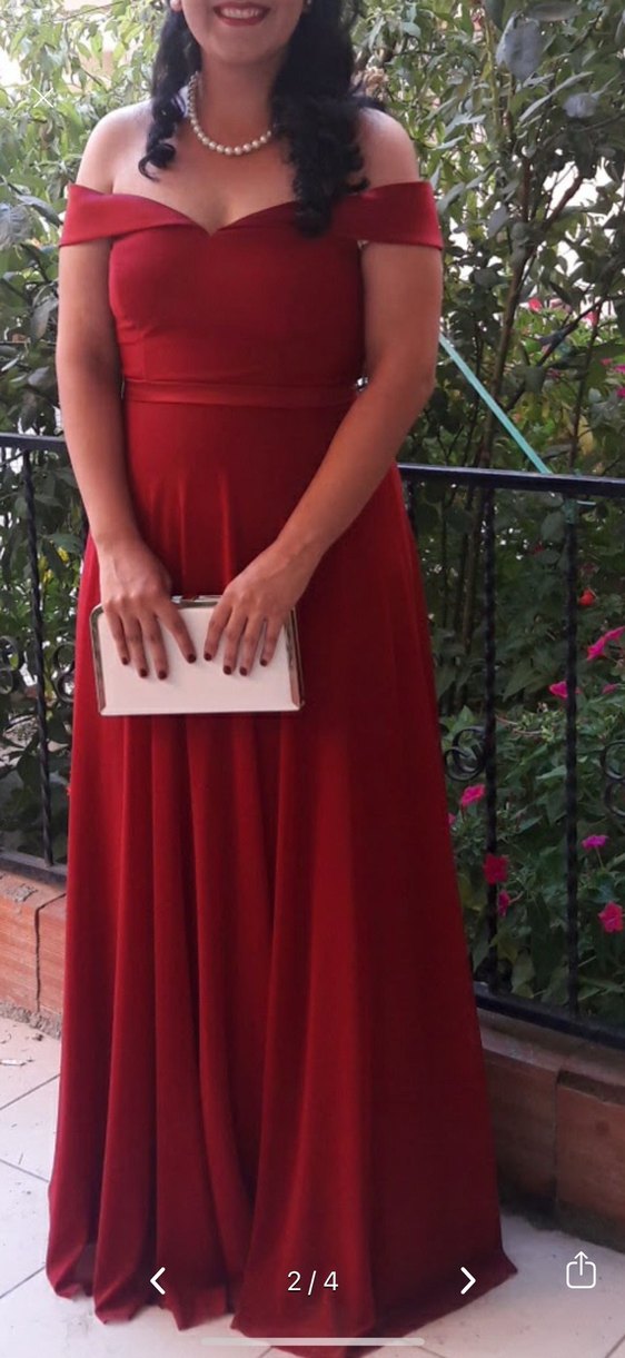 Bordo renkli, straplez ve askılı kollu, drapeli, modern klasik tarzda, düğünler için uygun, parlak ve fitted kesim midi abiye elbise.