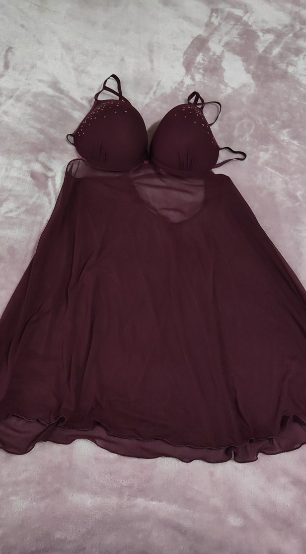 Bordo renk, strappy askılı, normal boy midi uzunluğunda, gösterişli gotik tarzda, vücuda oturan gecelik. Yumuşak ve desensiz kumaştan üretilmiştir.