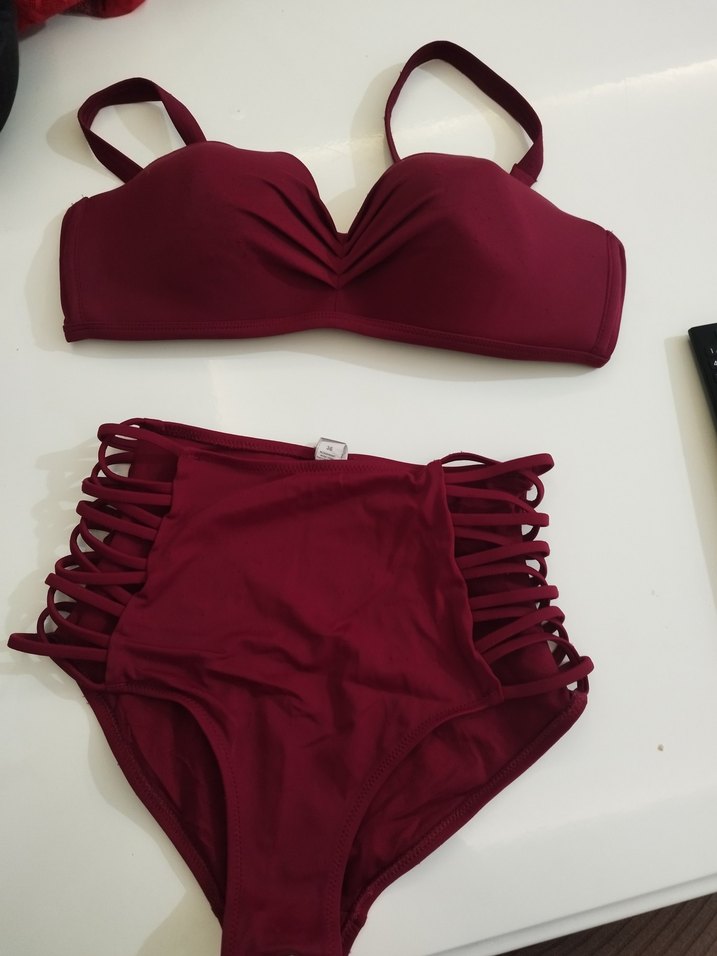 Bordo renkli bikini takımı,tittiklenme var kullanılmıştır defosu yoktur Penti marka normal fiyatı 800 lira