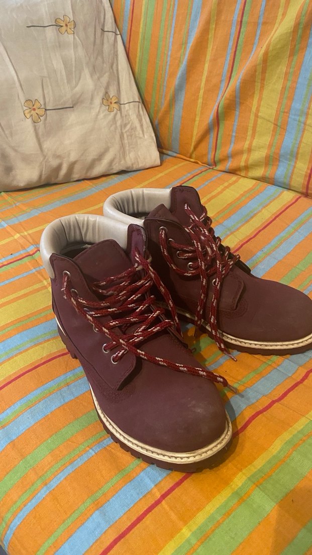 Bordo süet malzemeden yapılmış, renkli bağcıkları ve dolgu topuklu kadın botları. Günlük sokak tarzı için uygundur ve rahat bir kullanım sunar.