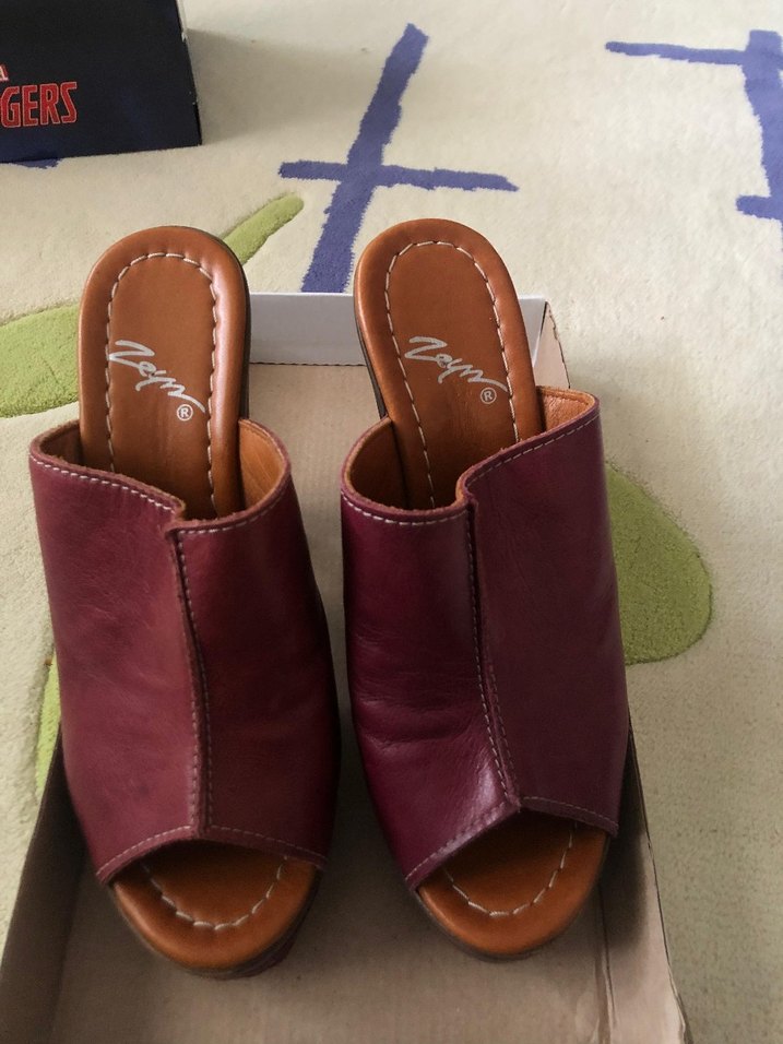 Bordo süet malzemeden yapılmış, dolgu topuklu kadın terlik. Minimalist ve renkli tasarımıyla günlük kullanıma uygundur.