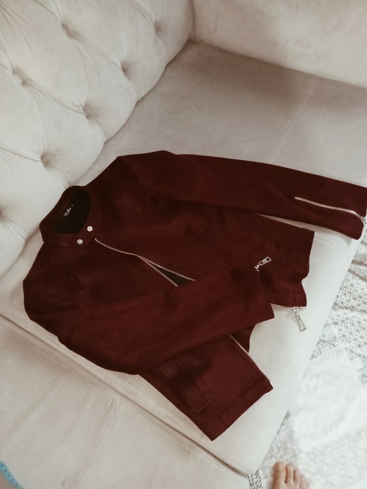 Bordo Süet Fermuarlı Kadın Ceket