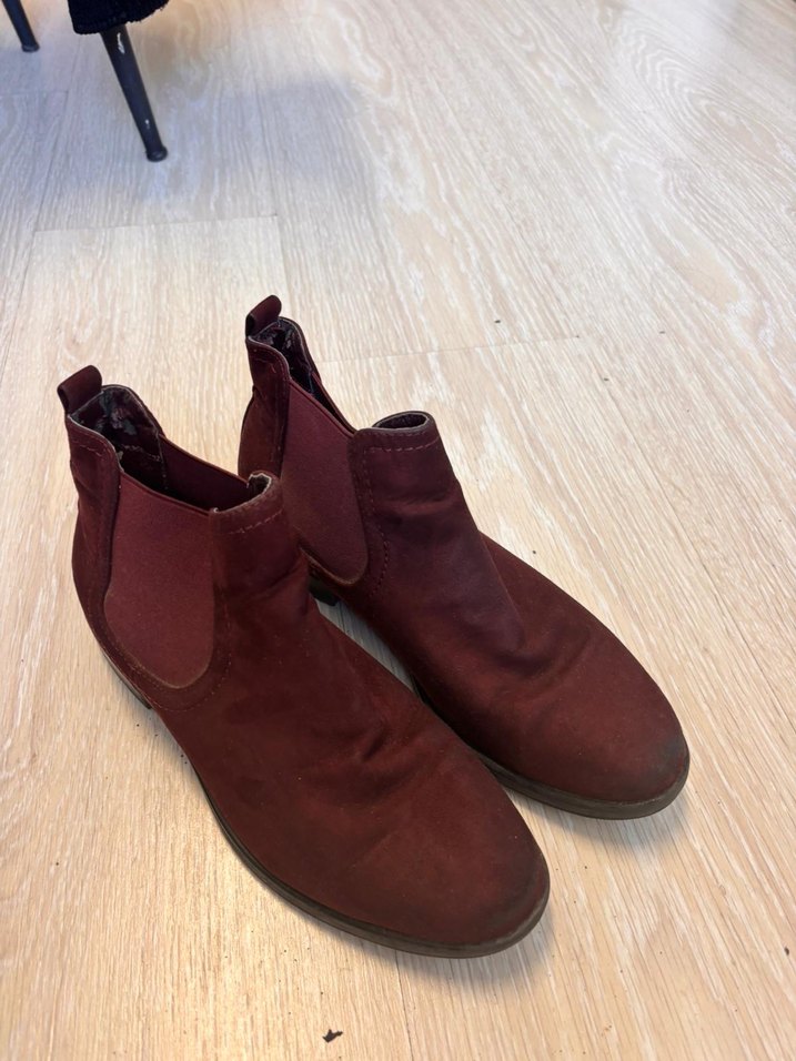 Bordo süet kadın botlar, blok topuklu ve desensiz tasarımıyla rahat, şık ve günlük sokak stiline uygun. Ürün önü katlandı poşetle taşıdığım için valizin içinde ayağa giyilince böyle durmuyor.