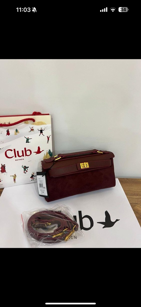 Bordo süet kadın çanta, baskılı desen ve kemerli tasarıma sahip, romantik akşamlar için uygun. Ayarlanabilir askı ile birlikte gelir.