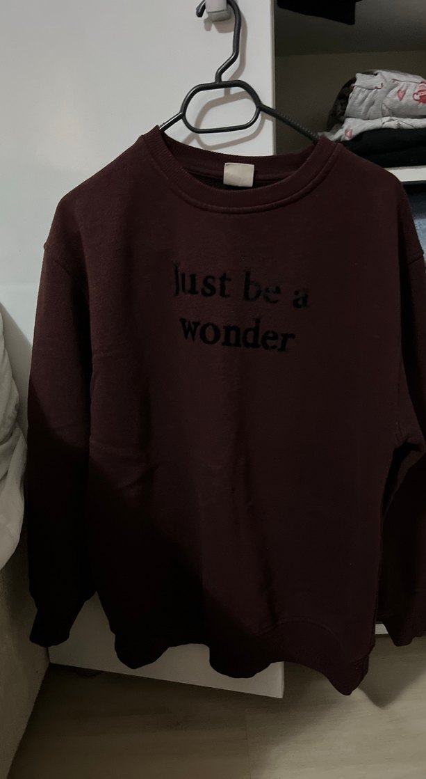 Bordo süet kumaştan uzun kollu, salaş kesim sweatshirt. Önünde "just be a wonder" yazılı baskı bulunur. Günlük kullanıma uygun rahat ve şık bir parça.