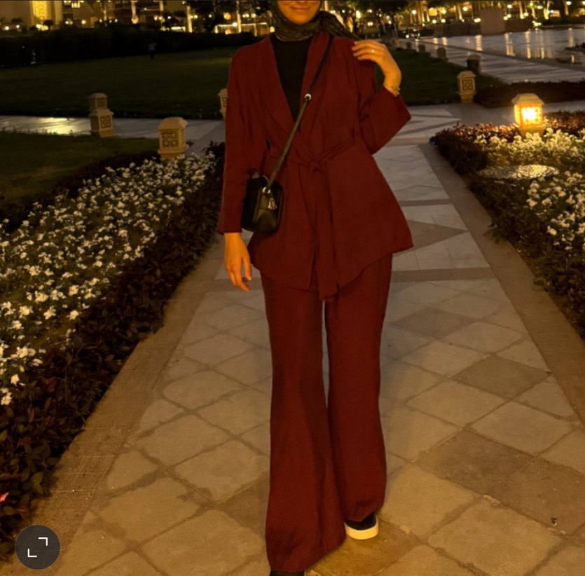 Bordo süet kumaştan, kemerli ve normal boy midi kesim, kesik yaka detaylı kadın takım elbisesi. Strappy kollu, iş ortamına uygun şık ve trend bir tasarım.