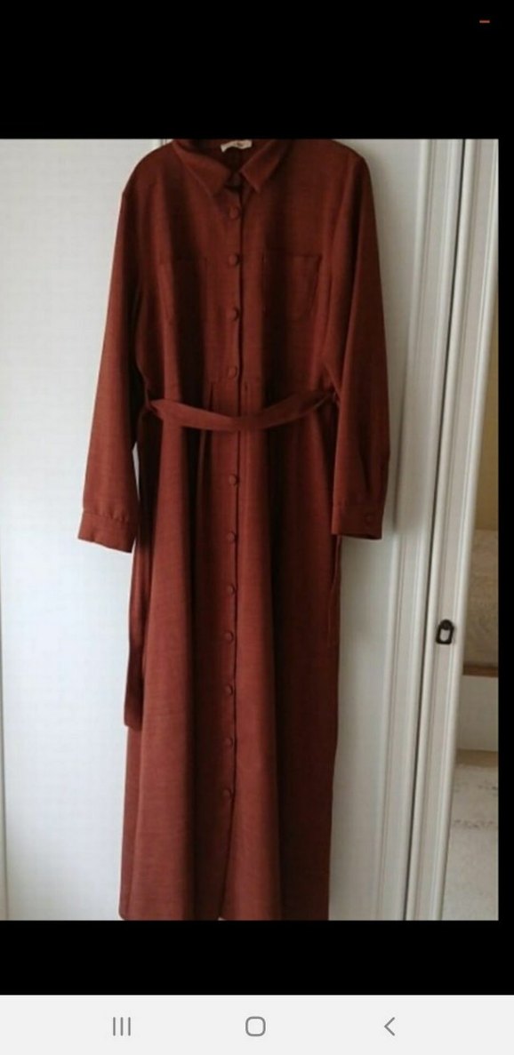 Bordo renkli, süet kumaştan yapılmış, uzun kollu ve notched lapel yakalı, kemerli, bol kesim uzun kadın elbisesi. Minimalist ve bohem tarzda, günlük kullanıma uygun.