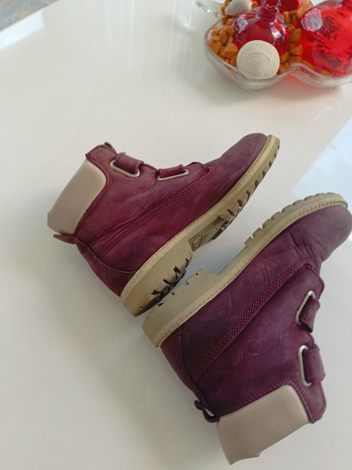 Bordo süet kız çocuk botu, tokalı detaylara ve dayanıklı tabana sahiptir. Trendy casual tarz için uygundur.