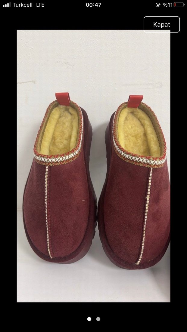 Bordo süet malzemeden yapılmış, kürk detaylı ve dolgu topuklu kadın terlik, günlük kullanıma uygun rahat bohem tarzında.
