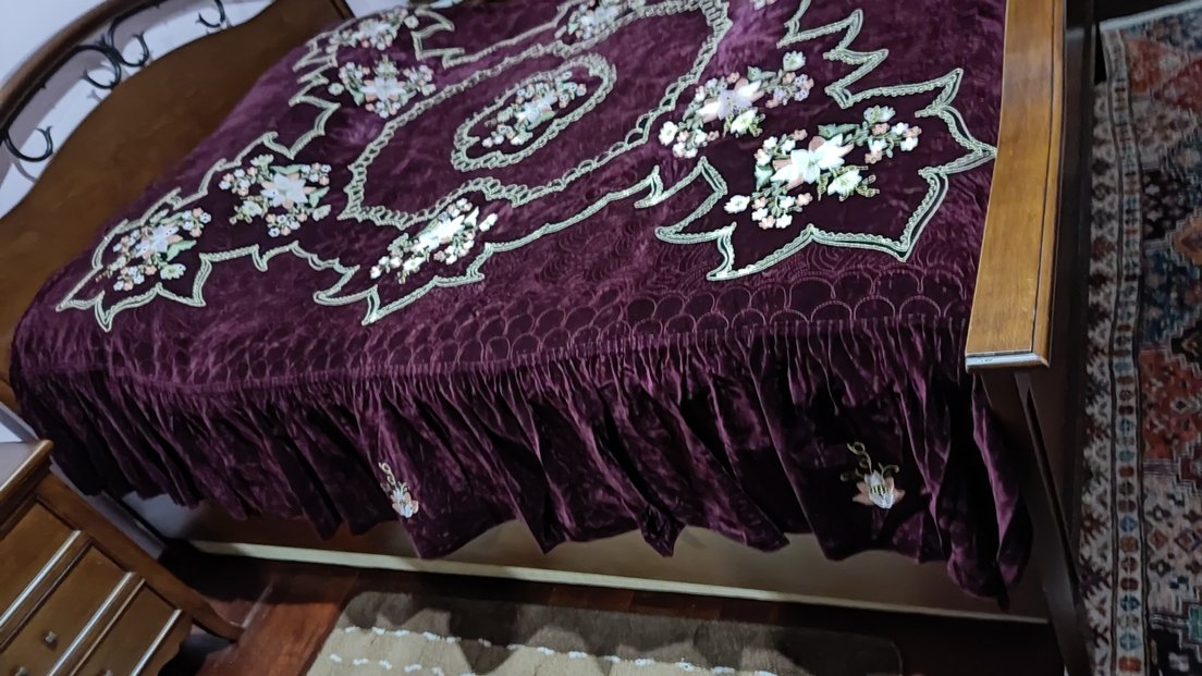 bordo suet Nakışlı Yatak Örtüsü